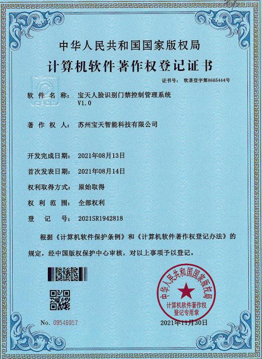 • 寶天人臉識別門禁控制管理系統V1.0