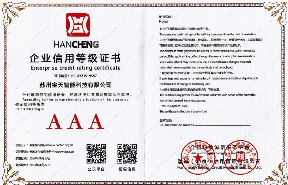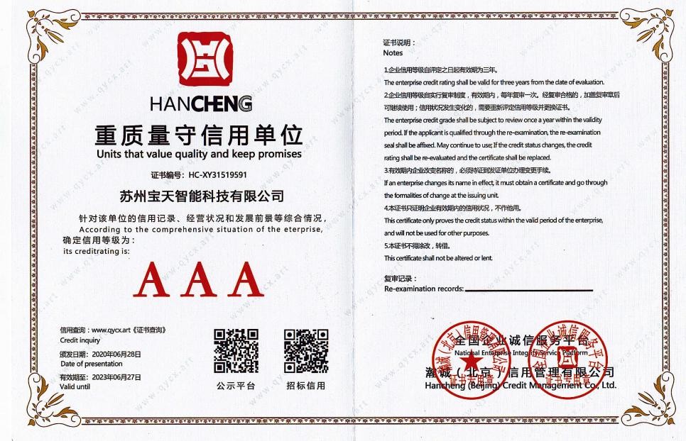 • AAA 級企業信用等級證書